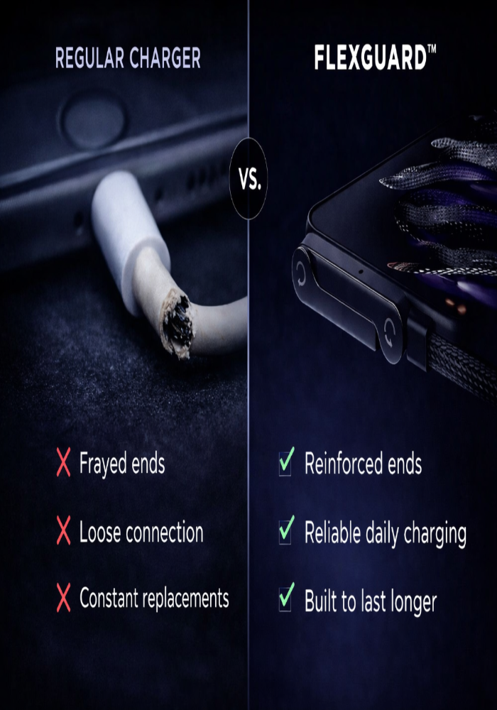 Designed with purpose. FlexGuard combines reinforced engineering and smart angles to eliminate cable strain and everyday frustration.